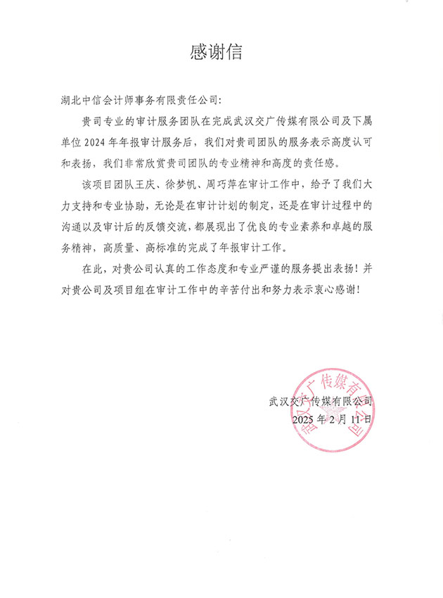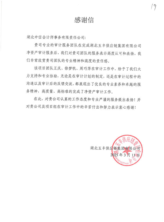 湖北農(nóng)發(fā)飼料有限公司感謝信