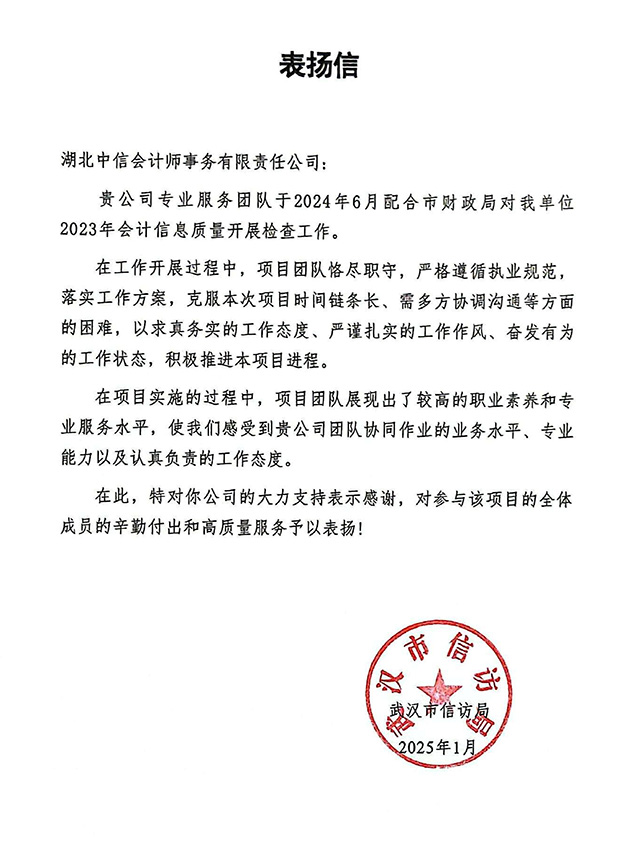 武漢市青山區(qū)人民政府國(guó)有資產(chǎn)監(jiān)督管理局表?yè)P(yáng)信