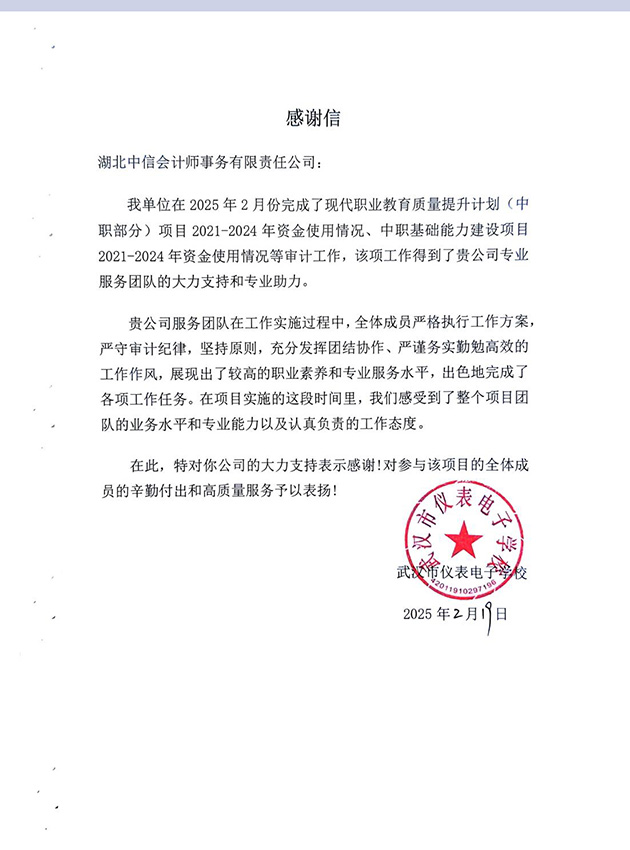 武漢城市建設(shè)集團(tuán)有限公司感謝信
