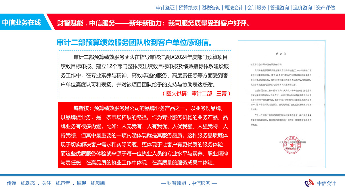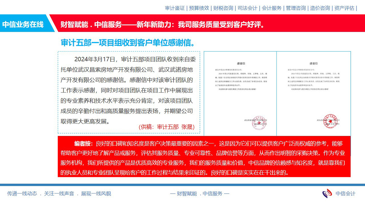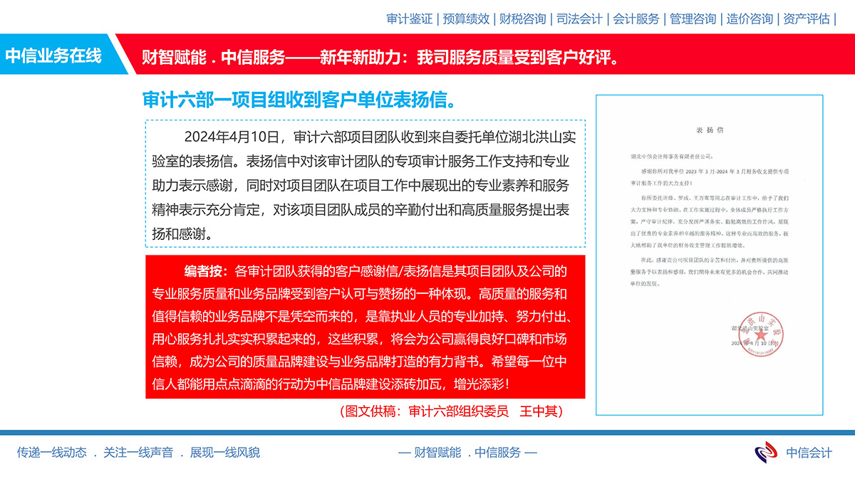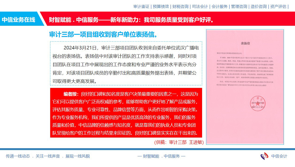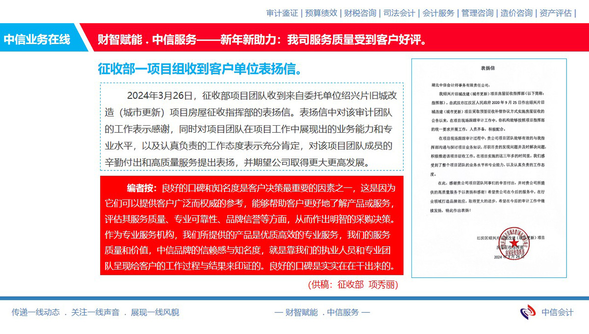 ——我司專項審計服務質(zhì)量受到客戶好評 -