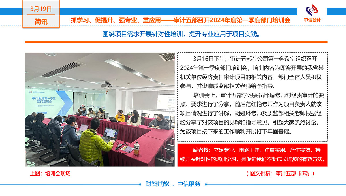 ——2024年中信“質(zhì)量月“學習活動系列:審計一部召開部門會議,開展《2023年省注協(xié)自律監(jiān)督檢查工作總結》學習,強化“誠信執(zhí)業(yè)、質(zhì)量至上”意識 -