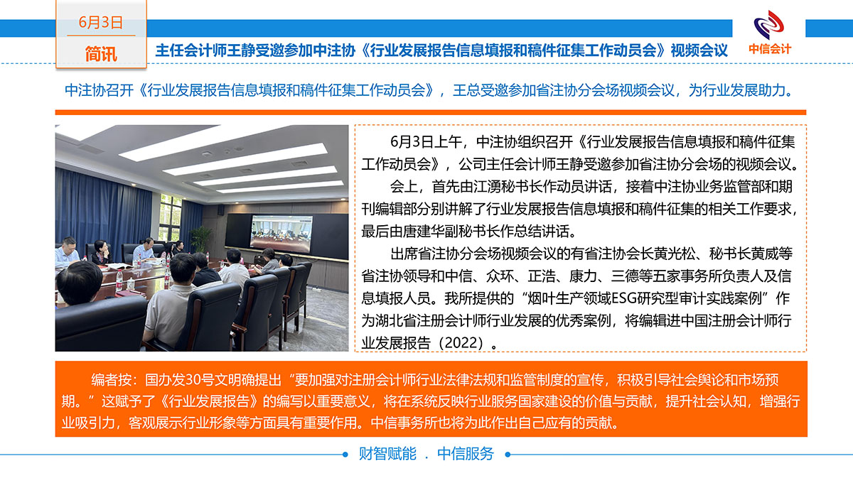 06/052024主任會計師王靜參加行業(yè)發(fā)展報告信息填報和稿件征集工作動員會