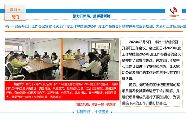 審計(jì)一部召開(kāi)部門工作會(huì)議宣貫《2023年度工作總結(jié)暨2024年度工作布置會(huì)》精神并開(kāi)展業(yè)務(wù)培訓(xùn),為新年工作啟局開(kāi)篇 -