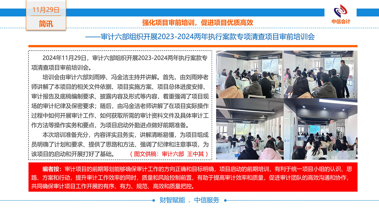 ——審計(jì)六部組織開展2023-2024兩年執(zhí)行案款專項(xiàng)清查項(xiàng)目審前培訓(xùn)會(huì) -