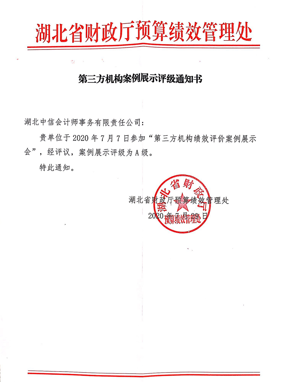 第三方機(jī)構(gòu)案例被省財(cái)政廳績效管理處評定A級通知書