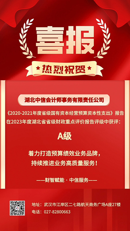 喜報(bào):在2023年度湖北省省級(jí)財(cái)政重點(diǎn)評(píng)價(jià)報(bào)告評(píng)級(jí)中獲評(píng)A級(jí)